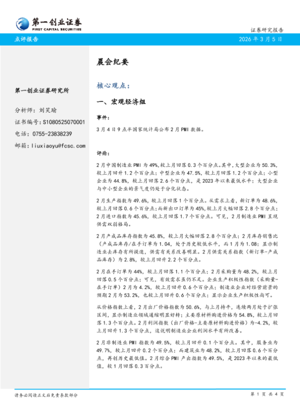 【第一创业证券】【202603】晨会纪要-4页 会议纪要