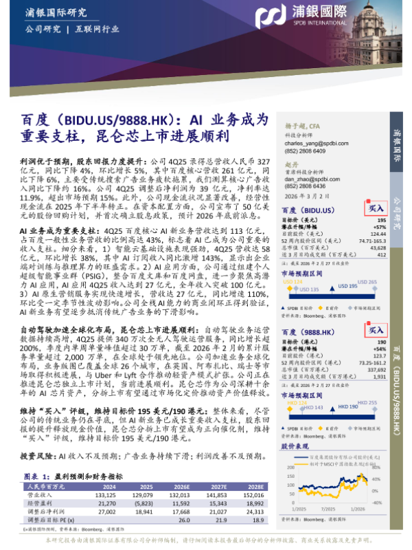【浦银国际】【202603】百度集团-SW-09888.HK-AI业务成为重要支柱_昆仑芯上市进展顺利-8页 证券期货研究报告