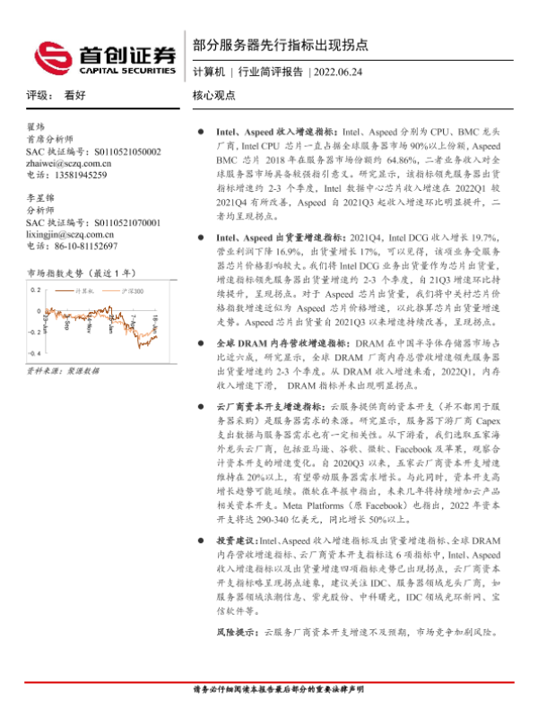 【首创证券】【20220624】20220624-首创证券-计算机行业简评报告:部分服务器先行指标出现拐点-7页 行业研究