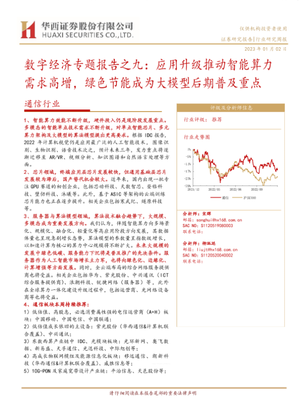 【华西证券】【20230103】通信行业数字经济专题报告之九:应用升级推动智能算力需求高增,绿色节能成为大模型后期普及重点-9页 行业研究