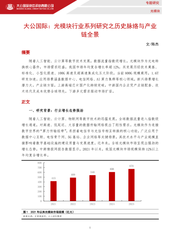 【大公国际】【2024】光模块行业系列研究之历史脉络与产业链全景-7页 行业研究
