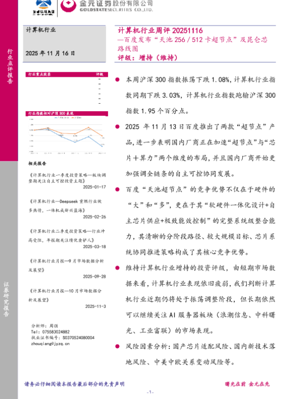 【金元证券】【202511】计算机行业周评:百度发布“天池256_512卡超节点”及昆仑芯路线图-15页 证券期货研究报告
