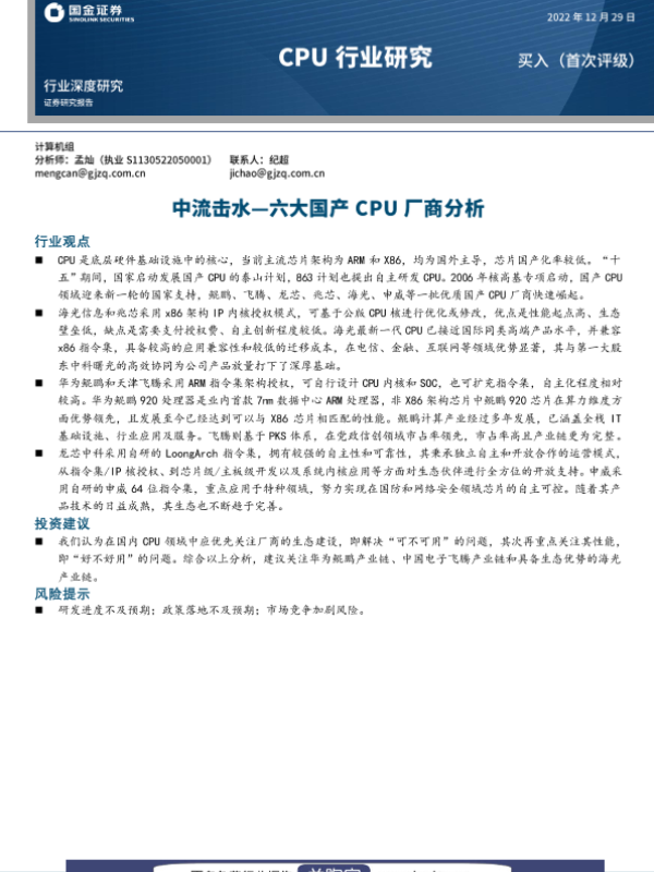 【国金证券】【20221229】CPU行业研究:中流击水-六大国产CPU厂商分析-28页 行业研究