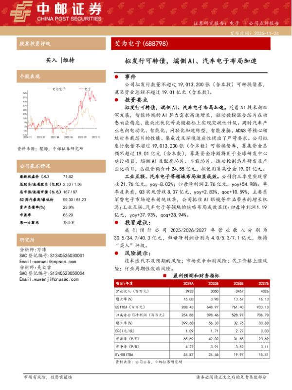 【中邮证券】【202511】拟发行可转债_端侧AI_汽车电子布局加速-4页 证券期货研究报告