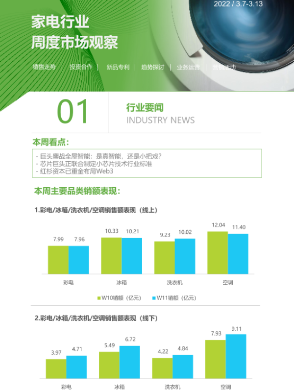 【艾瑞咨询】【20220313】2022年第11周:家电行业周度市场观察-8页 市场调研