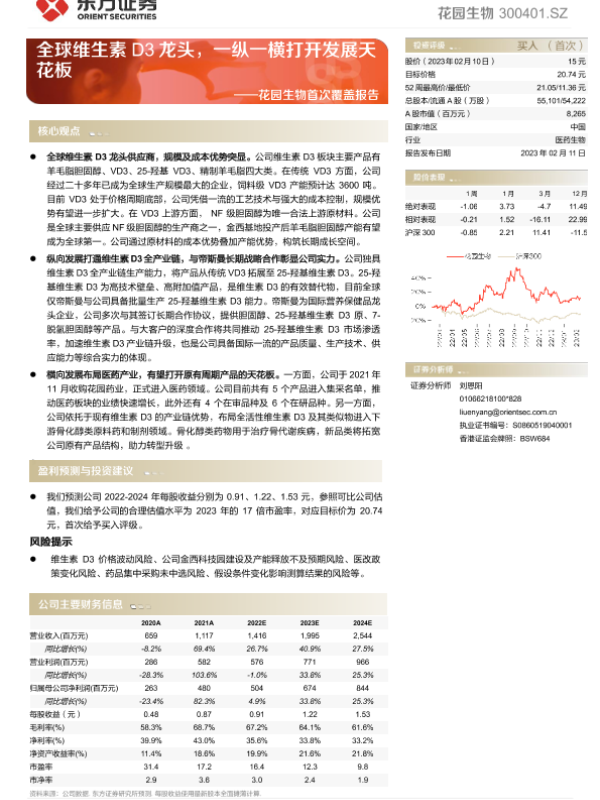【东方证券】【20230211】20230211-东方证券-花园生物-300401.SZ-首次覆盖报告:全球维生素D3龙头,一纵一横打开发展天花板-34页 行业研究