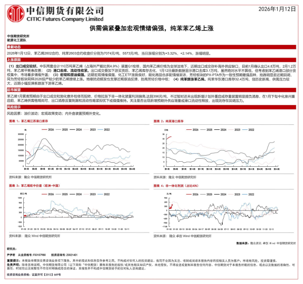 【中信期货】【202601】供需偏紧叠加宏观情绪偏强,纯苯苯乙烯上涨-1页 证券期货研究报告