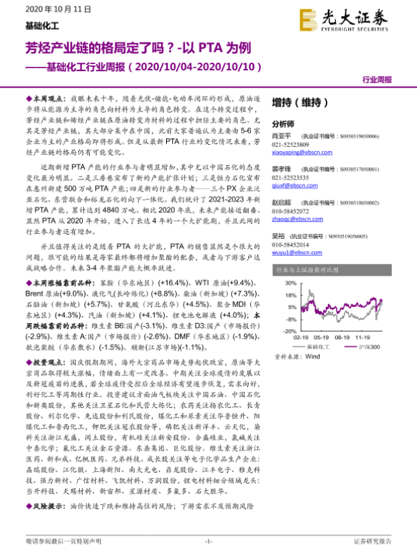 【光大证券】【20201011】基础化工行业周报:芳烃产业链的格局定了吗?-以PTA为例-23页 行业研究