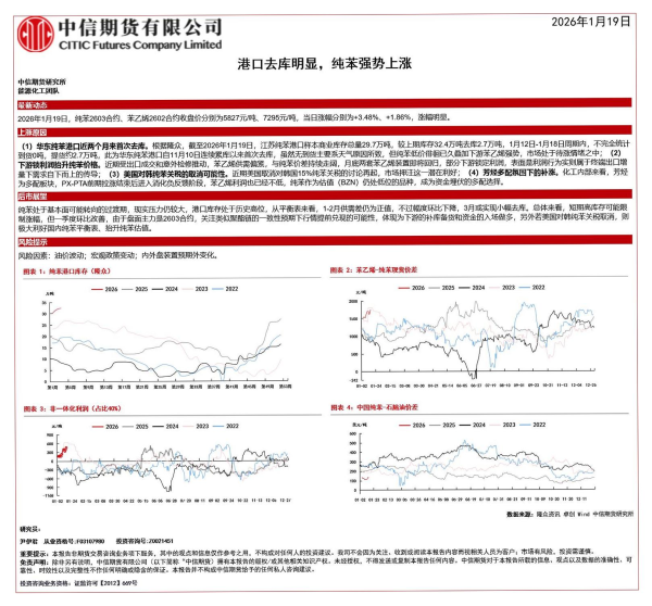 【中信期货】【202601】港口去库明显_纯苯强势上涨-1页 证券期货研究报告