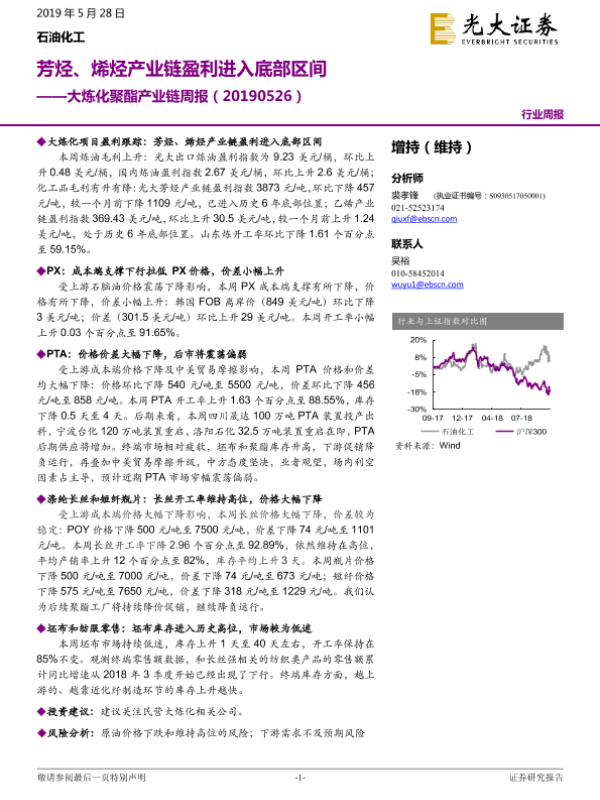 【光大证券】【20190528】20190528-光大证券-大炼化聚酯产业链周报:芳烃、烯烃产业链盈利进入底部区间-12页 行业研究