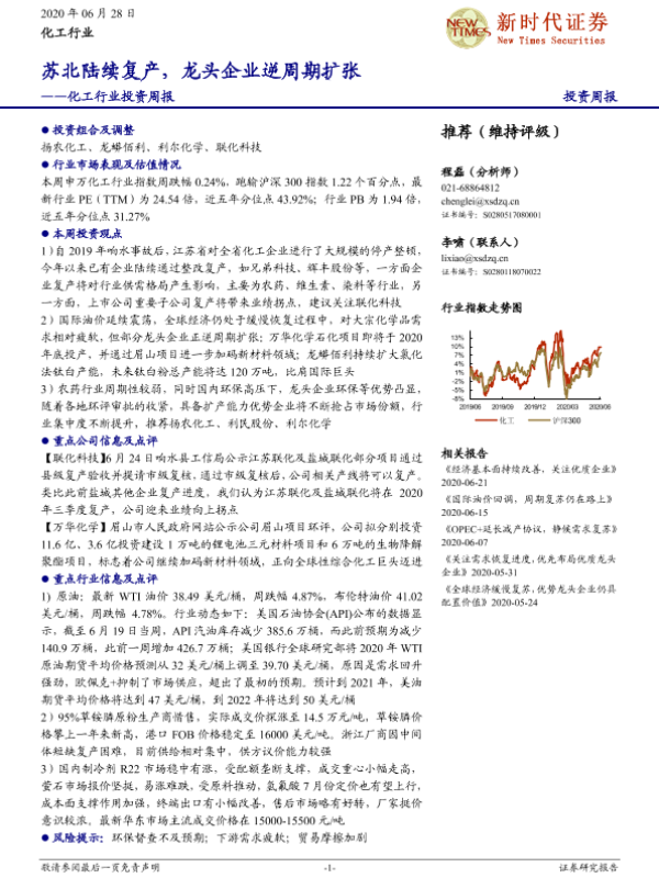 【新时代证券】【20200628】20200628-新时代证券-化工行业投资周报:苏北陆续复产,龙头企业逆周期扩张-18页 行业研究