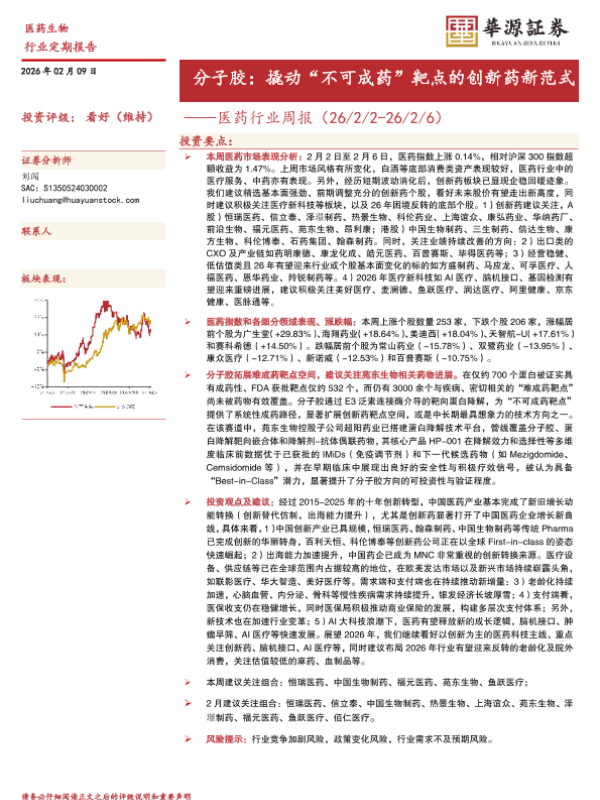 【华源证券】【202602】分子胶:撬动“不可成药”靶点的创新药新范式——医药行业周报(26/2/2-26/2/6)-13页 证券期货研究报告