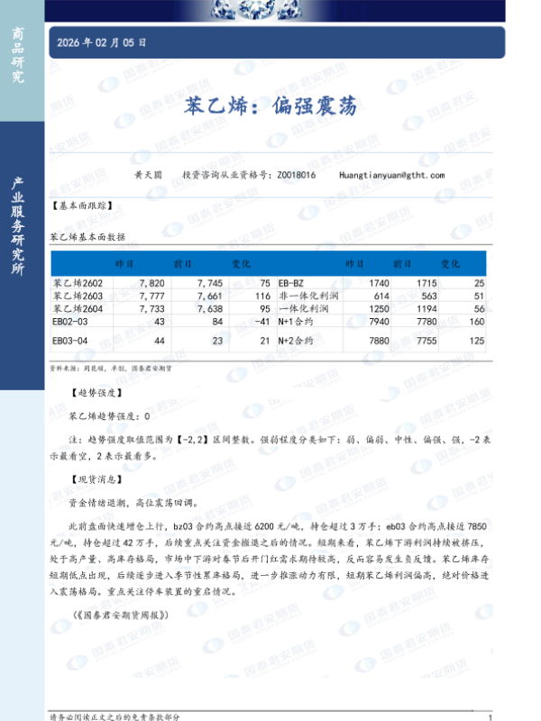 【国泰君安期货】【202602】苯乙烯:偏强震荡-2页 证券期货研究报告