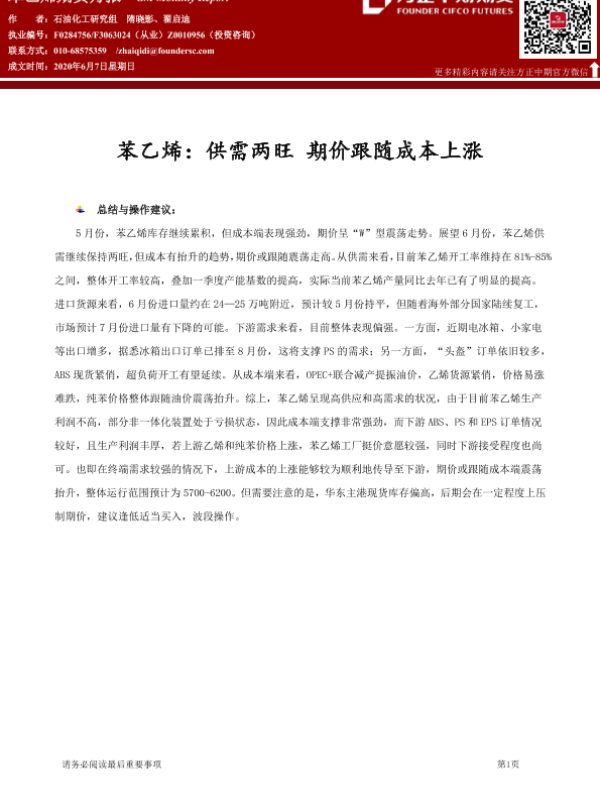 【方正中期期货】【20200607】苯乙烯期货月报-21页 行业研究
