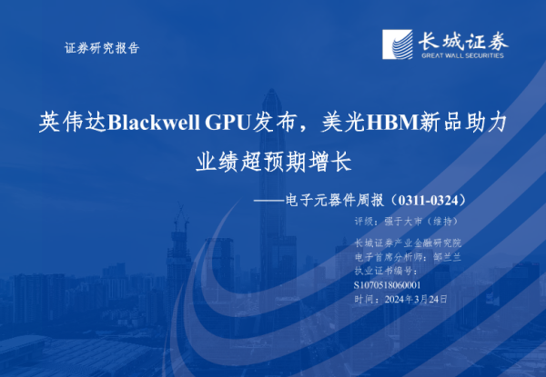 【长城证券】【20240324】20240324-长城证券-电子元器件行业周报:英伟达Blackwell GPU发布,美光HBM新品助力业绩超预期增长-46页 行业研究