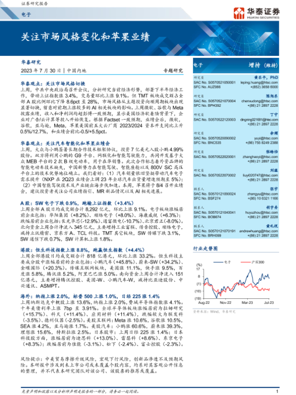 【华泰证券】【20230730】20230730-华泰证券-电子专题研究:关注市场风格变化和苹果业绩-45页 行业研究