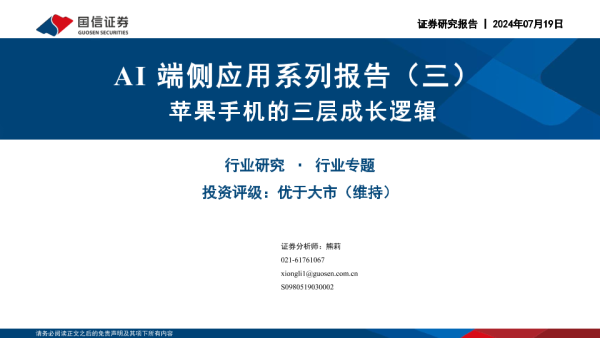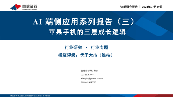 【国信证券】【20240719】AI端侧应用系列报告(三)-苹果手机的三层成长逻辑-23页 行业研究