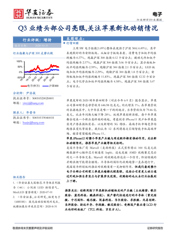 【华安证券】【20201031】20201031-华安证券-电子行业周报:Q3业绩头部公司亮眼,关注苹果新机动销情况-16页 行业研究