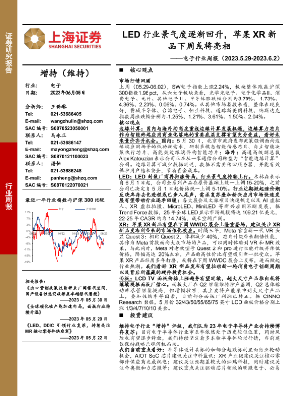 【上海证券】【20230605】20230605-上海证券-电子行业周报:LED行业景气度逐渐回升,苹果XR新品下周或将亮相-12页 行业研究