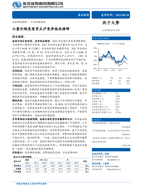 【东北证券】【20220818】从量价维度看茅五泸竞争格局演绎-35页 行业研究