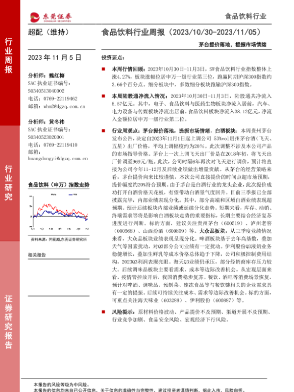 【东莞证券】【20231105】20231105-东莞证券-食品饮料行业周报:茅台提价落地,提振市场情绪-14页 行业研究