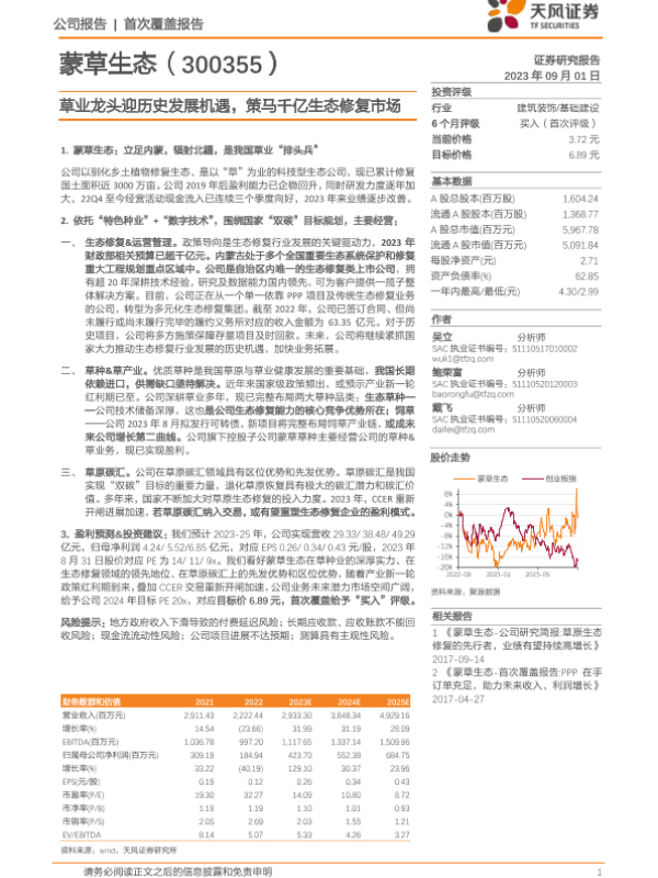 【天风证券】【20230901】草业龙头迎历史发展机遇,策马千亿生态修复市场-27页 行业研究