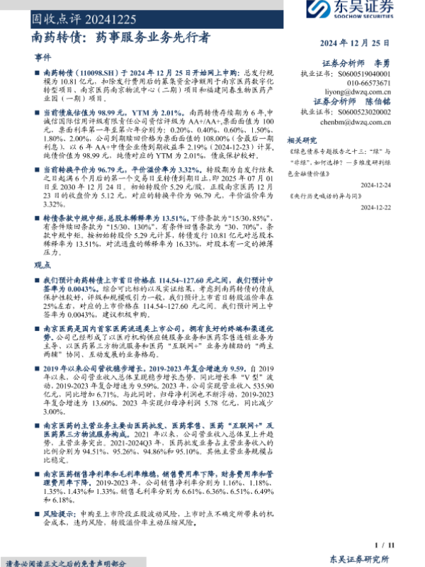 【东吴证券】【20241225】南药转债:药事服务业务先行者-11页 行业研究
