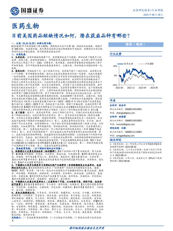 【国盛证券】【20230828】目前美国药品短缺情况如何,潜在获益品种有哪些?-24页 行业研究