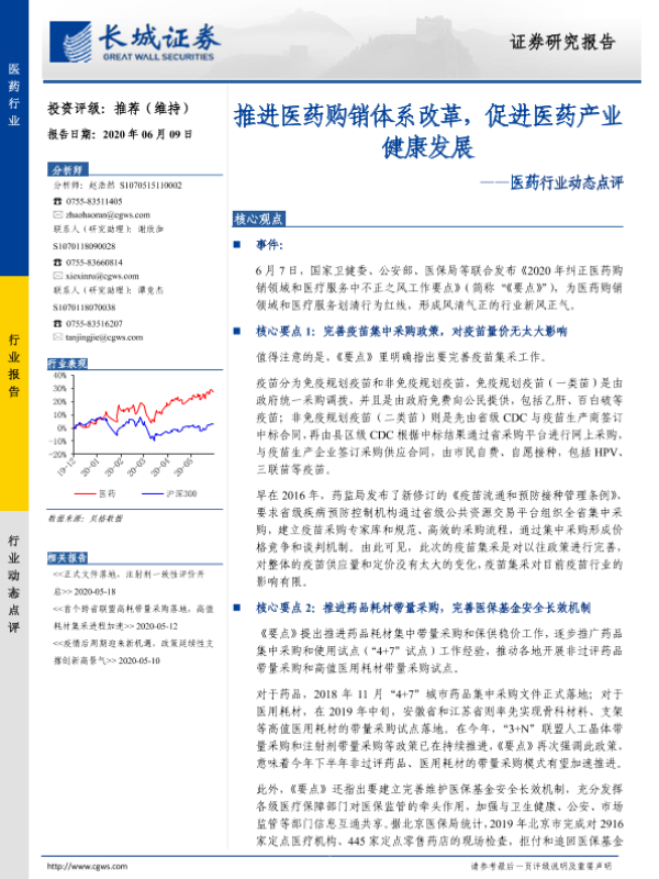 【长城证券】【20200609】推进医药购销体系改革,促进医药产业健康发展-3页 行业研究