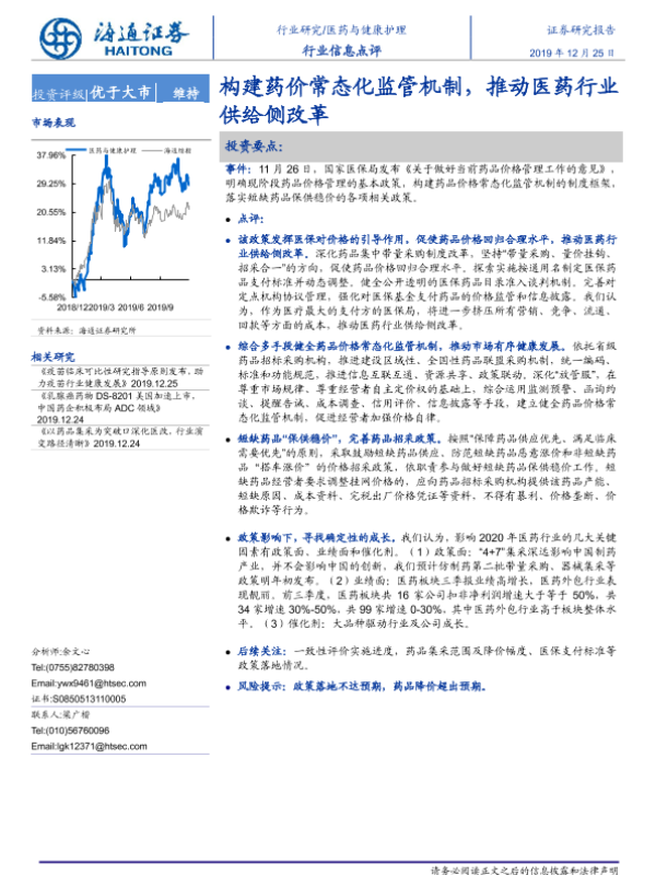 【海通证券】【20191225】构建药价常态化监管机制,推动医药行业供给侧改革-2页 行业研究