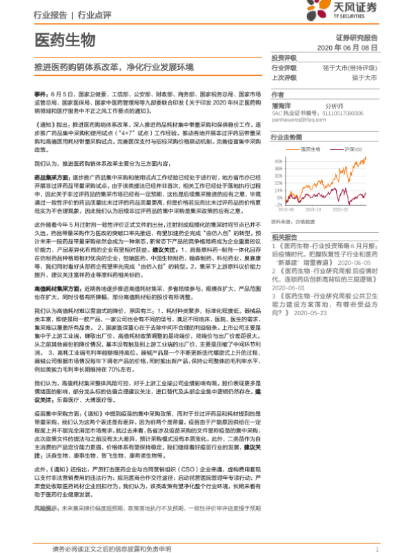 【天风证券】【20200608】推进医药购销体系改革,净化行业发展环境-2页 行业研究