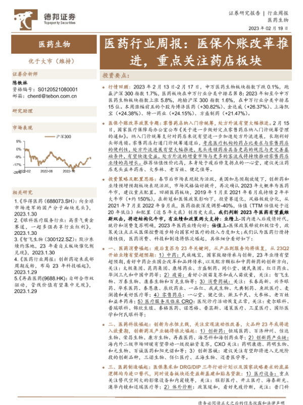 【德邦证券】【20230219】医药行业周报:医保个账改革推进,重点关注药店板块-22页 行业研究