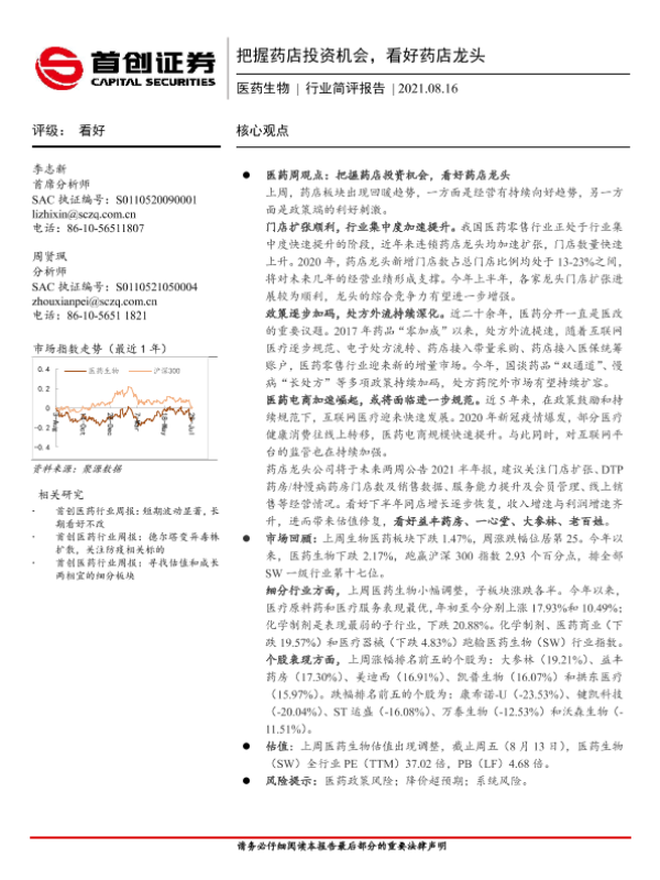 【首创证券】【20210816】把握药店投资机会,看好药店龙头-9页 行业研究