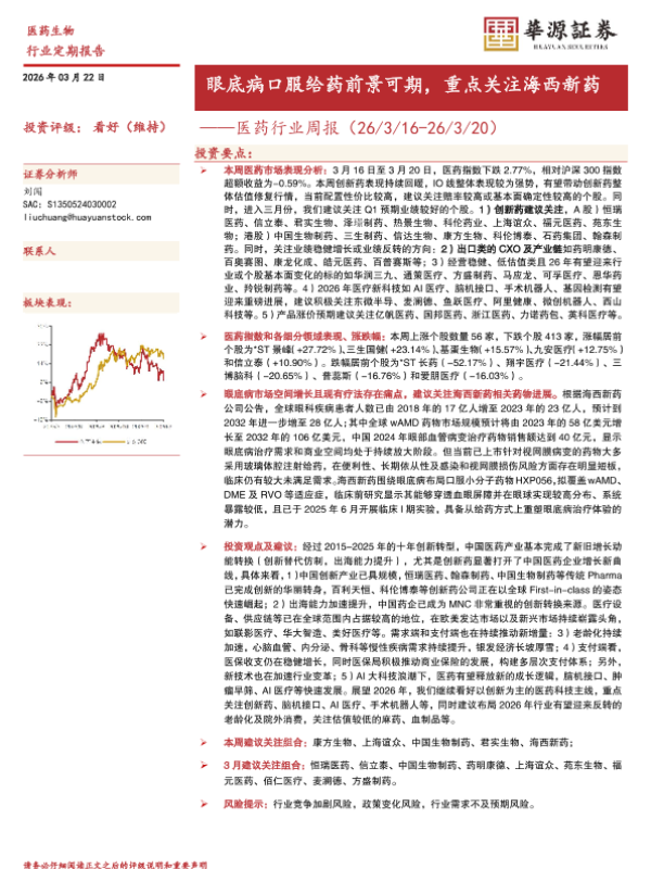 【华源证券】【202603】眼底病口服给药前景可期,重点关注海西新药-15页 证券期货研究报告