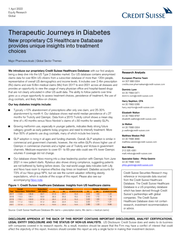 【瑞信(Credit Suisse)】【202204】新的专利CS医疗保健数据库为治疗选择提供了独特的见解-61页 行业研究