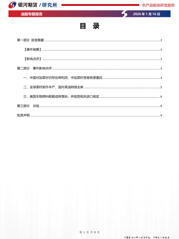 【银河期货】【202601】油脂专题报告_中加关系缓和对菜油的影响-9页 证券期货研究报告
