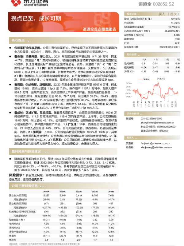 【东方证券】【20230220】道道全首次覆盖报告:拐点已至,成长可期-23页 行业研究