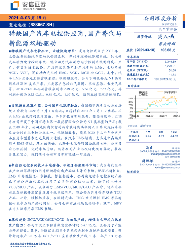 【安信证券】【20210318】稀缺国产汽车电控供应商,国产替代与新能源双轮驱动-30页 行业研究