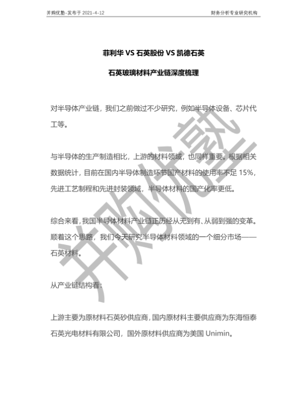 【并购优塾】【20210412】菲利华VS石英股份VS凯德石英:石英玻璃材料产业链深度梳理-17页 行业研究