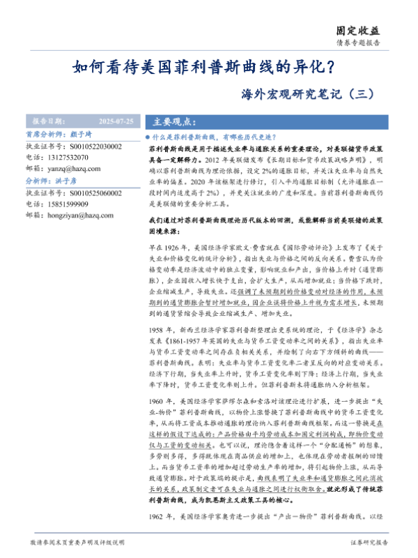 【华安证券】【202507】如何看待美国菲利普斯曲线的异化?-10页 证券期货研究报告