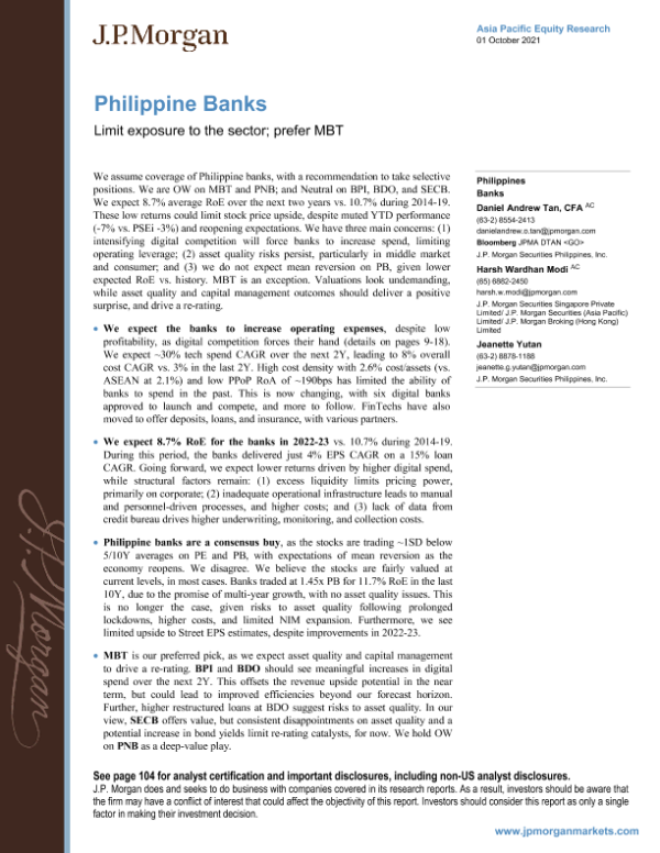 【J.P. Morgan】【20211001】菲律宾银行:限制对该行业的风险敞口-111页 行业研究