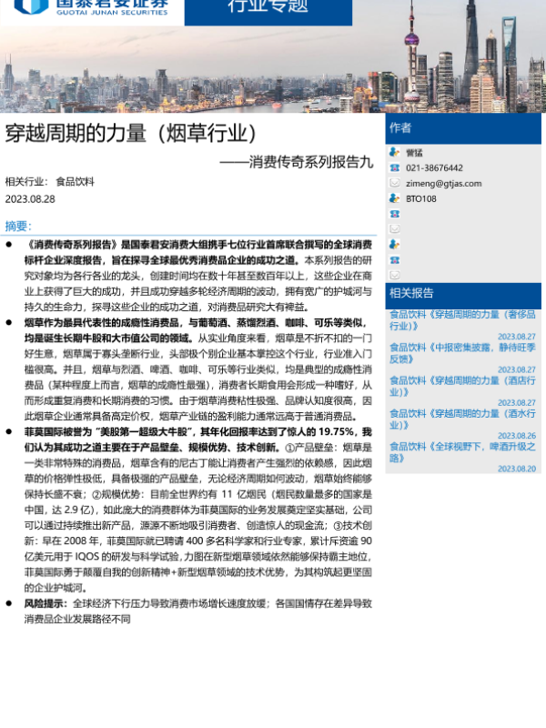 【国泰君安证券】【20230828】穿越周期的力量(烟草行业)——消费传奇系列报告九-13页 行业研究
