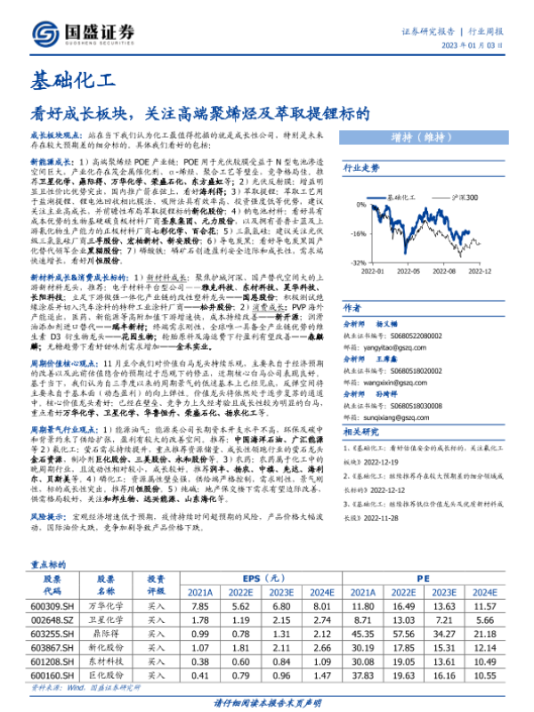 【国盛证券】【20230103】20230103-国盛证券-基础化工行业周报:看好成长板块,关注高端聚烯烃及萃取提锂标的-23页 行业研究