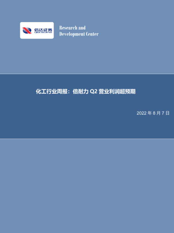 【信达证券】【20220807】化工行业周报:倍耐力Q2营业利润超预期-23页 行业研究