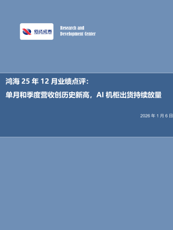 【信达证券】【202601】鸿海25年12月业绩点评:单月和季度营收创历史新高,AI机柜出货持续放量-6页 证券期货研究报告