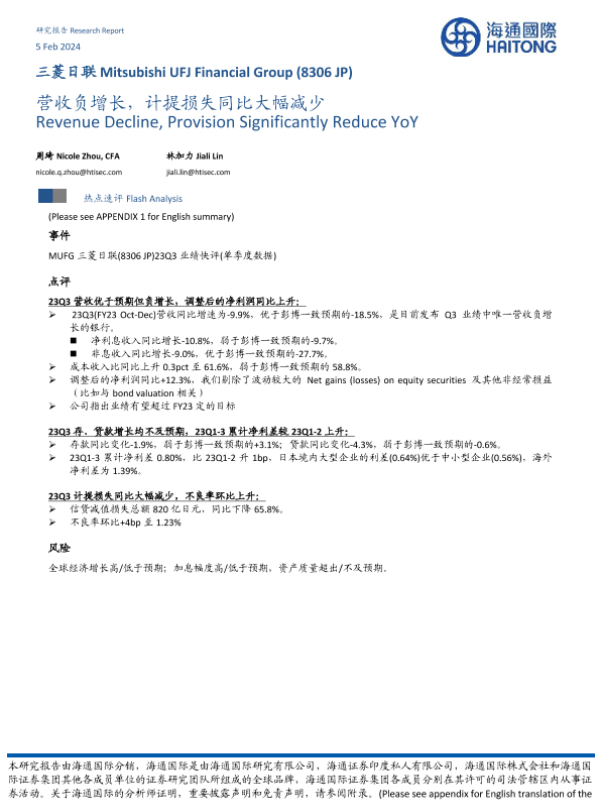 【海通国际】【20240205】营收负增长,计提损失同比大幅减少-10页 行业研究