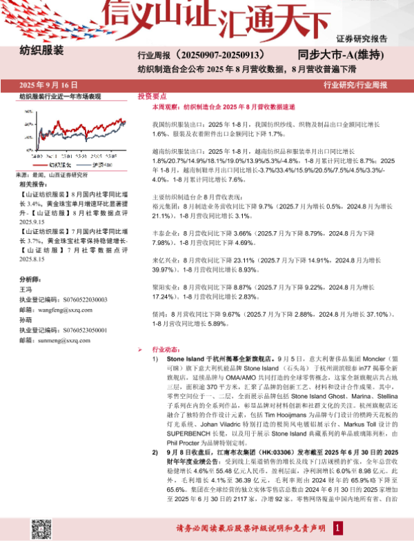 【山西证券】【202509】纺织服装 行业周报(20250907-20250913)同步大市-A(维持)-17页 证券期货研究报告