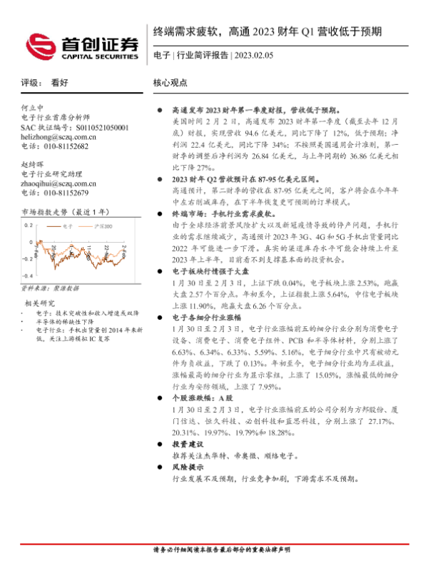 【首创证券】【20230205】终端需求疲软,高通2023财年Q1营收低于预期-11页 行业研究