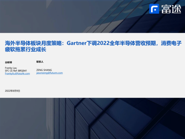 【富途证券】【20220809】海外半导体行业板块月度策略:Gartner下调2022全年半导体营收预期,消费电子疲软拖累行业成长-21页 行业研究