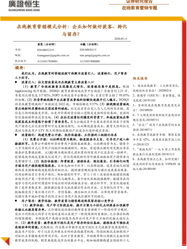 【广证恒生】【20200513】在线教育营销模式分析:企业如何做好获客、转化与留存?-25页 行业研究